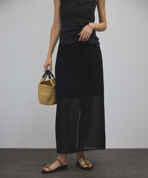 | 商品の特徴 | アイテム説明サイズレビューミニスカートの上にシアースカートをレイヤードし、ヘムシアースカートとしても着用できる2WAYスカート■デザイン/シルエットリーンなシルエットのシアーレイヤード2WAYナロースカートです。シアースカートはファスナーあきで着脱もストレスフリー。バックスリットでさらに抜け感をプラスし、足さばきもスムーズに。ペチコートよしても使えるミニスカートのウエストはオールゴム仕様で、シャイニーなゴムがアクセントに。シアースカートの中に裏地としてミニスカートを着用し、ミニスカートのウエストゴムをちらりとのぞかせる着こなしが旬。■素材ロングスカートにはさらりとした快適な肌触りの繊細なシアー素材を使用。ミニスカートは肌触りが魅力のサテン素材を使用しております。安心感のある厚みのサテン生地はナチュラルストレッチで着心地もストレスフリー。透け感も気になりません。微細な凹凸のある表面感が雰囲気の生地です。やわらかなオフホワイト、シックなブラックの2色展開です。■コーディネートまた、シアースカートはデニムやパンツなどとのレイヤードもお楽しみいただけます。スタイリングのバリエーションが広がる1着です。ハイツイストコットンカーディガンとのスタイリングがエフォートレスムードでおすすめ。いつものナロースカートの代わりに差し込むだけでTシャツやタンクも新鮮に感じさせてくれます。■モデル身長:164cm 着用サイズ:Fーーーーーーーーーー裏地:あり(付属のミニスカート)光沢感:なし透け感:スカートあり、ミニスカートなしウエスト:スカートなし、ミニスカートゴムありポケット:なし伸縮性:スカートなし、ミニスカートゴムあり生地の厚さ:薄手ーーーーーーーーーー原産国ベトナム素材(本体)レーヨン60% ナイロン40%(ペチスカート)ポリエステル100%特徴無地タイトナイロンウエストゴム・紐ロング・マキシ丈関連カテゴリースカートスカート性別タイプレディース即日即日配送可送料配送ごとに¥330ギフトラッピング可サイズウエストヒップスカート丈FREE71(ミニスカート)68-9698(ミニスカート)100 91(ミニスカート)46.5 ※()内の表示はZOZOTOWN独自の基準で振り分けたサイズです。ブランド表記サイズとは異なりますのでご注意ください。サイズガイド | ||